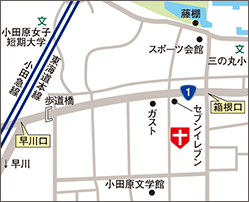 JR小田原駅下車 箱根方面行バスにて箱根口下車 進行方向少しのセブンイレブン左折すぐ